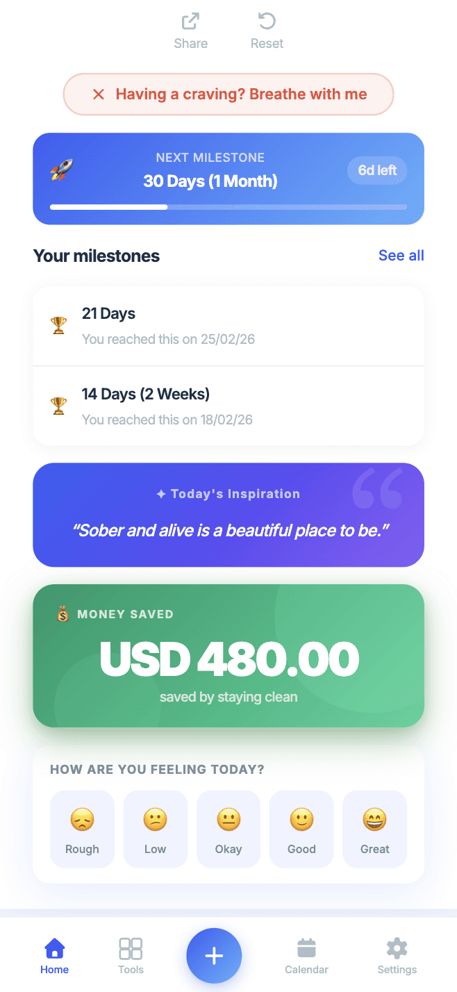 Whether it's junk food, smoking, or scrolling, track the days since you quit and build momentum.